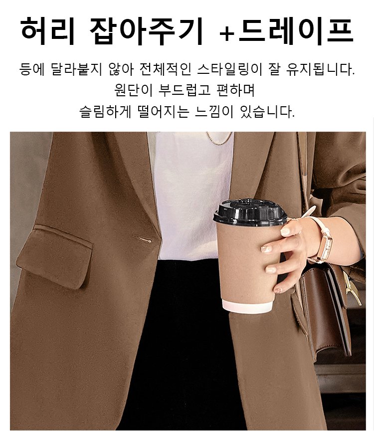 ● 셀럽들이 선택한 트렌디한 디자인으로 어떤 코디에도 세련된 포인트를 더해주는 얇고 심플한 드레이프 자켓입니다.