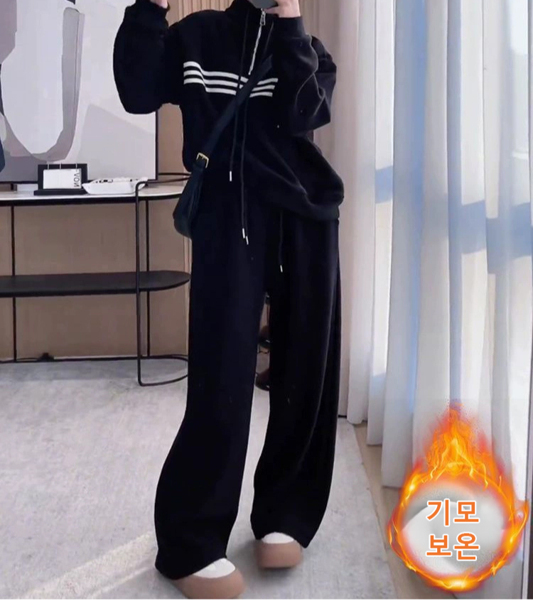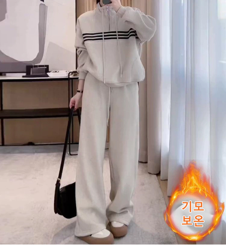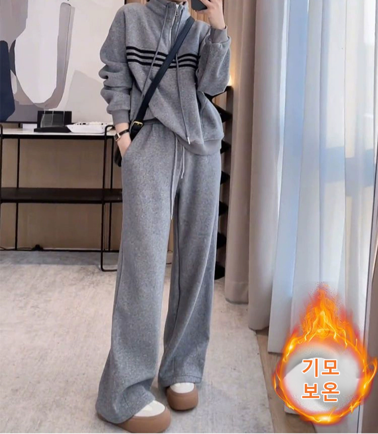 기품 있는 하이넥 두꺼운 디자인 스트라이프 맨투맨 세트